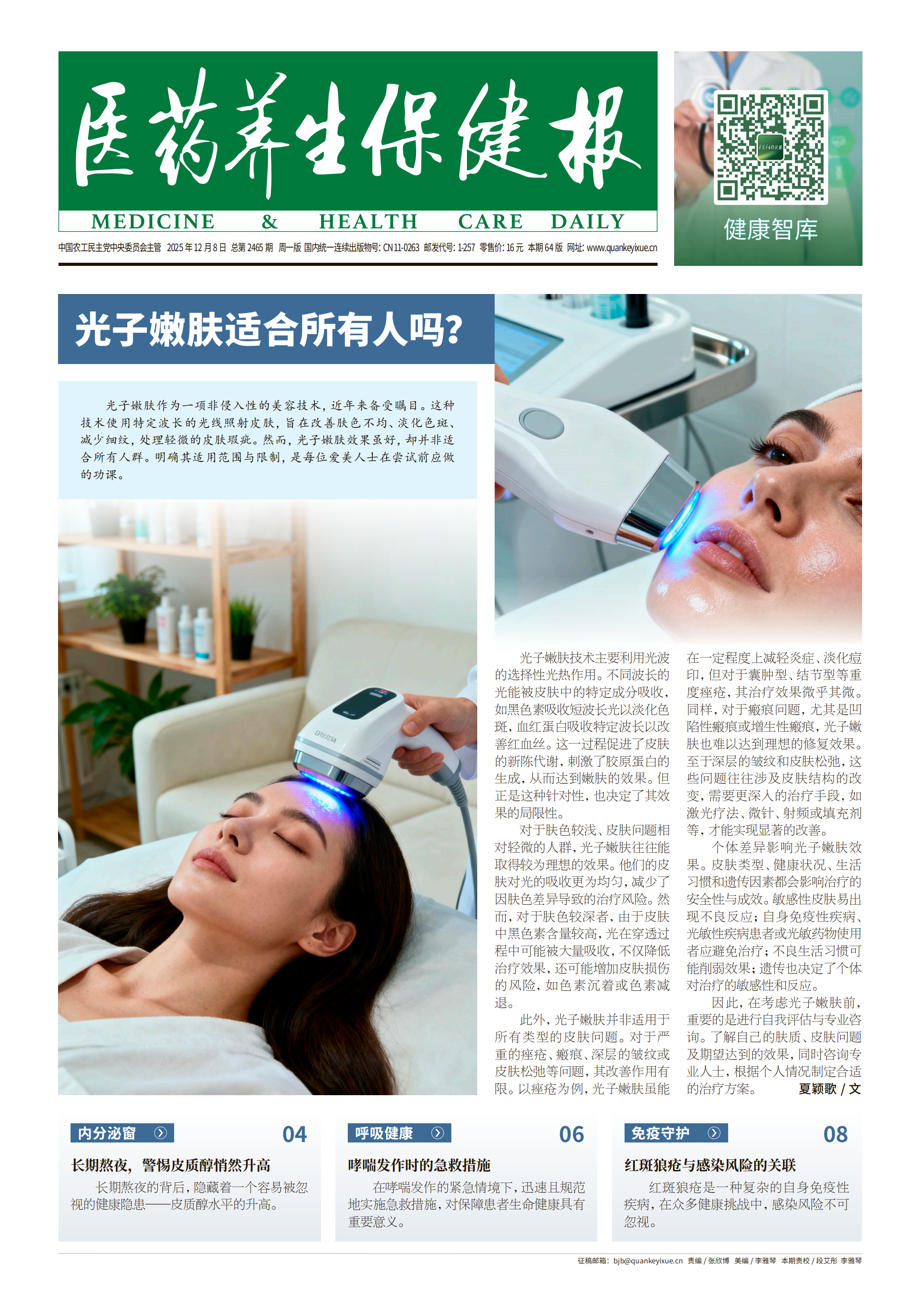 Copyright @ 2011-2026  版权所有:《医药养生保健报》社  本网站所刊登的各种新闻﹑信息均为《医药养生保健报》社版权所有