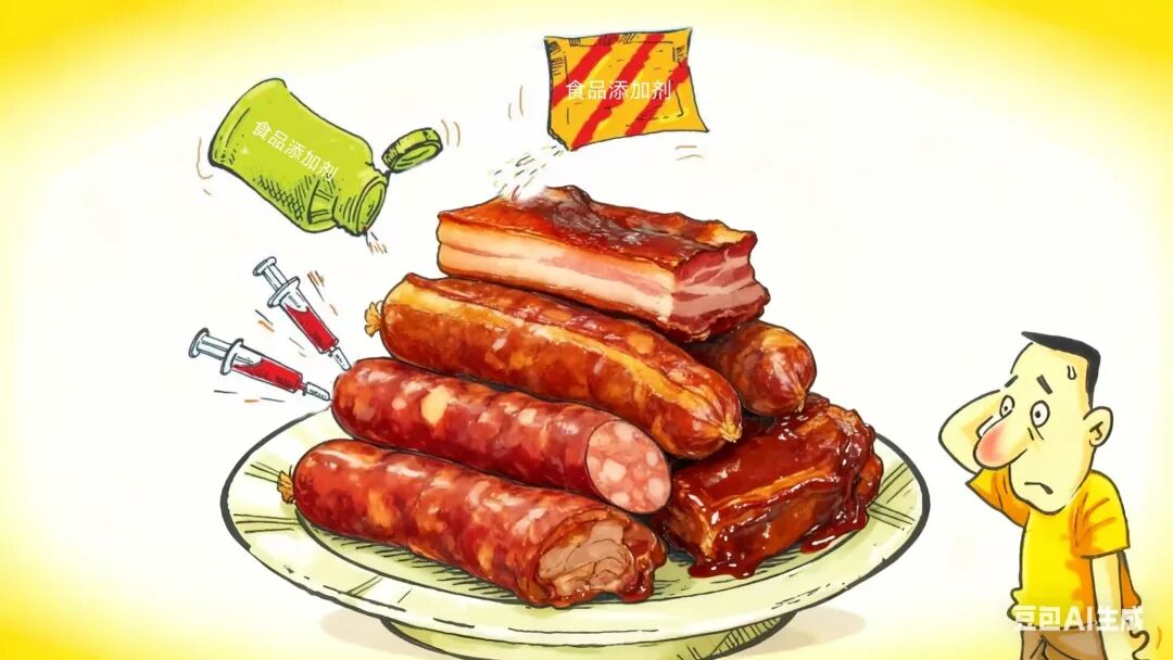 还有部分加工肉制品为了提升口感、改善色泽,会添加各类食品添加剂,虽然正规厂家使用的食品添加剂都符合国家相关标准,适量摄入不会产生危害,但加工肉制品本身就属于高盐、高脂的食物,再叠加添加剂的摄入,长期大量食用的情况下,依然会给身体带来额外负担,间接增加健康风险。
